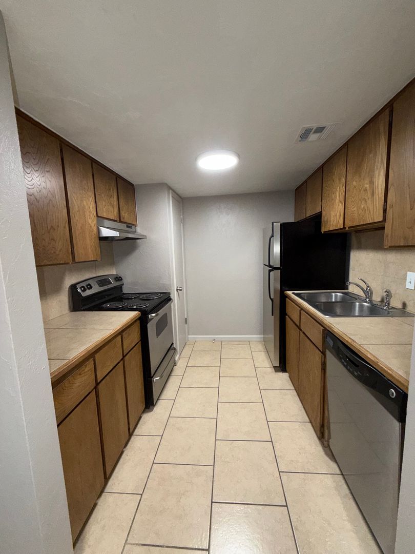 Refrigerator, range, and dishwasher included
